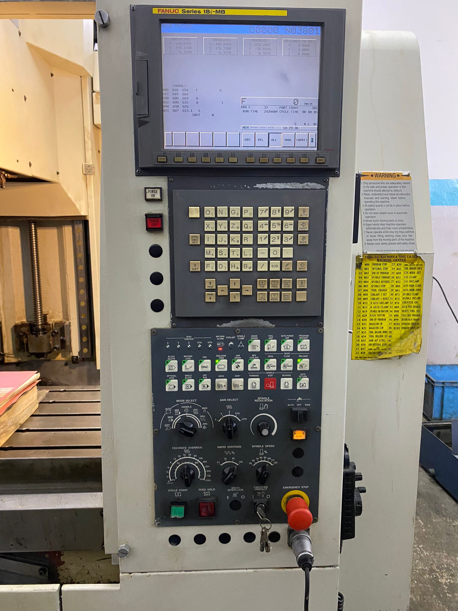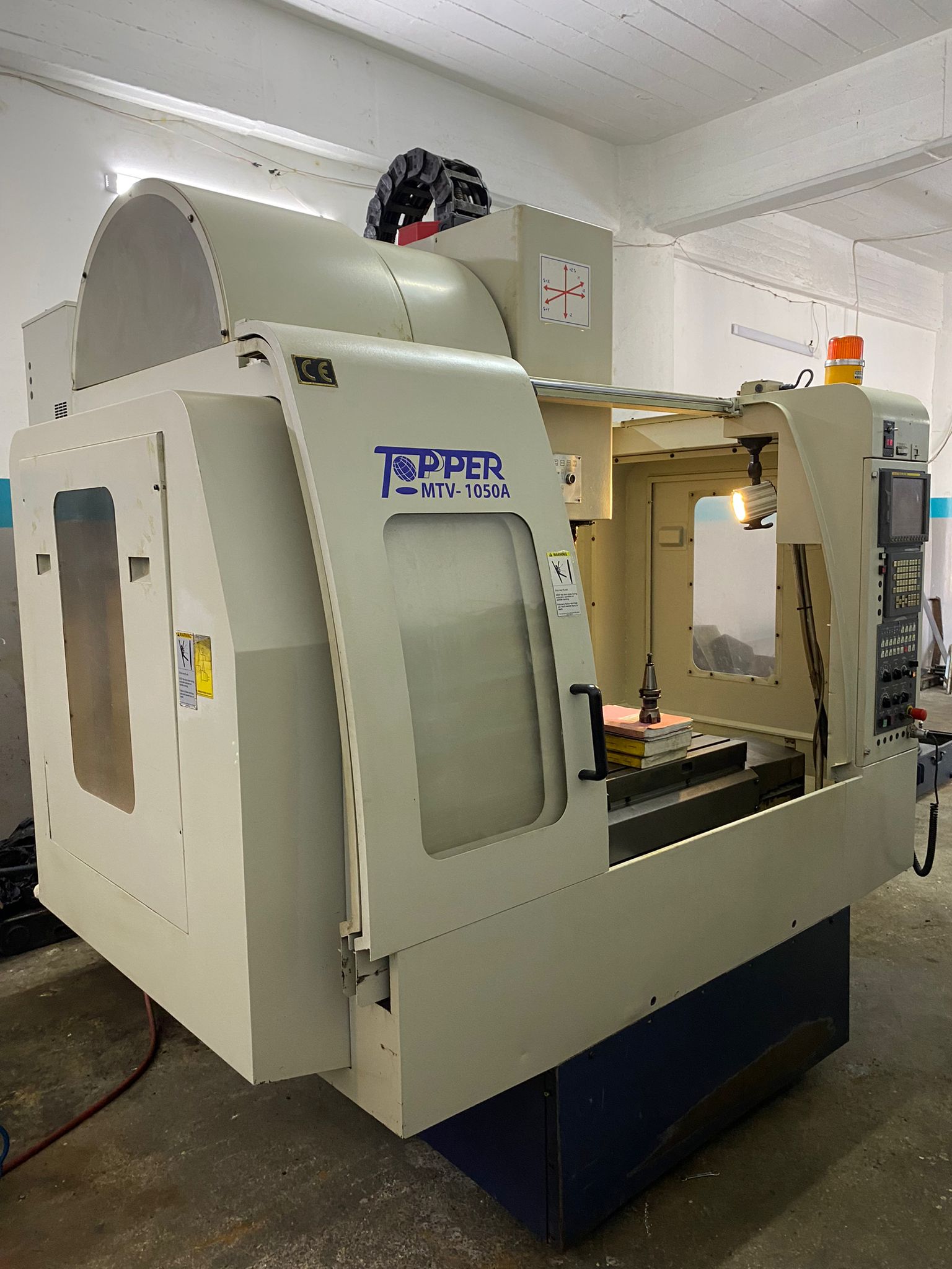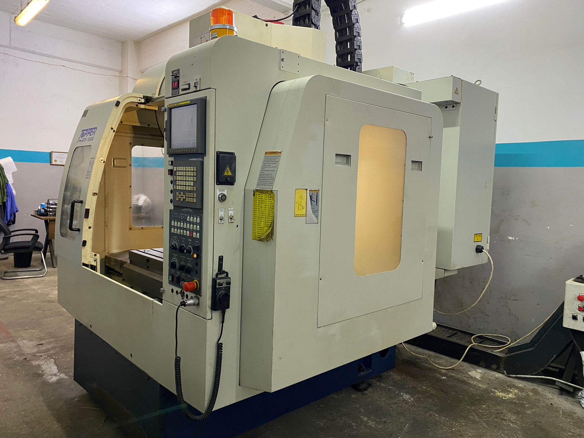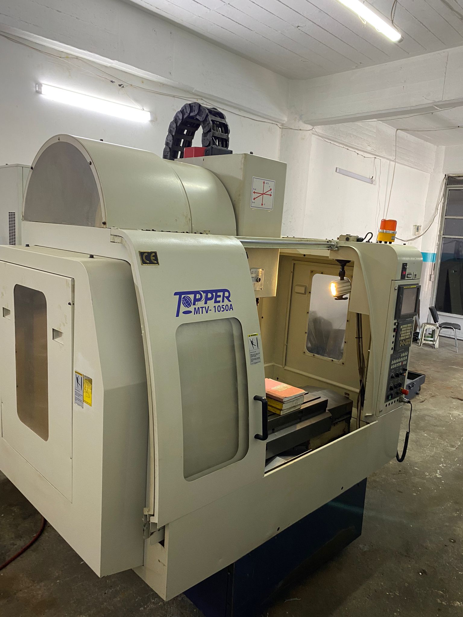 TOPPER TONGTAİ TMV 1050 A FANUC 18İMB Kontrol Ünitesi MODEL:2006.11 AY'DIR X Eksen Hareketi: 1050 mm, Y Eksen Hareketi: 500 mm, Z Eksen Hareketi: 530 mm, Tabla Ölçüsü: 1100x600 mm Maksimum İş Parçası Ağırlığı: 700 kg Tabla Yüksekliği: 900 mm İş Mili Koniği: BT40 FENER Mili : 10.000 DEVİR, Seri Hareket Hızları: 30-30-24 m/dk, Kesme Hızı: 10000 mm/dk, Takım Kapasitesi: 24 Takım (Kollu Tip), İş Mili Motor Gücü: 15 kW, Eksen Motorlarının Güçleri: 3.0-3.0-4.0 KW En x Boy x Yükseklik: 2400x2870x2810 Net Ağırlık: 6800 kg, MAKİNAMIZIN TÜM BAKIMLARI YAPILMIŞTIR SIFIR HASSASİYETİNDEDİR. EKSENLERDE,FENER MİLİNDE SES, BOŞLUK VS BİRŞEY YOKTUR. ELEKTİRİK ALTINDADIR GÖRÜLEBİLİR.PARÇA İŞLEYEBİLİRSİNİZ.
